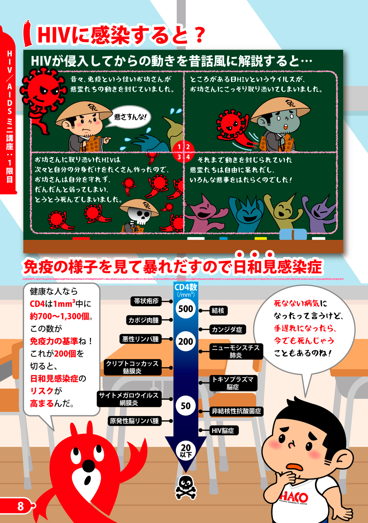 その時にTwitterケンちゃんアカウントで連続掲載した「ケンちゃんとリボン先生のHIV/AIDSミニ講座」の内容を再構成、九州医療センターの先生方に監修していただき内容をアップデートし、2020年に発行した小冊子のPDFです。